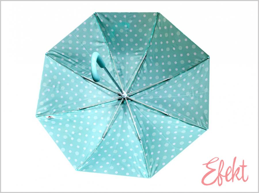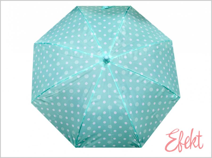 Detský dáždnik s manuálnym otváraním s ochrannými plastovými krytkami na konci prútov. Palicové prevedenie zjednodušuje ručné otváranie a zaručuje pevnosť konštrukcie.